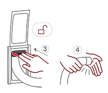 Placez votre main sur l'embout du flexible, et grâce à la force d'aspiration, il se rétractera aisément à l'intérieur du mur.